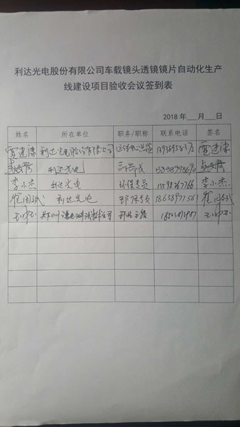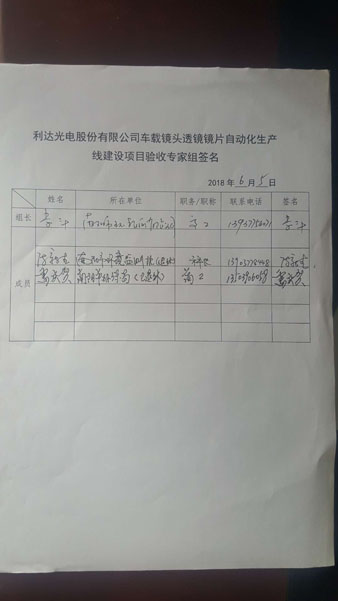 利達(dá)光電股份有限公司車載鏡頭透鏡鏡片自動化生產(chǎn)線建設(shè)項(xiàng)目竣工環(huán)境保護(hù)驗(yàn)收意見