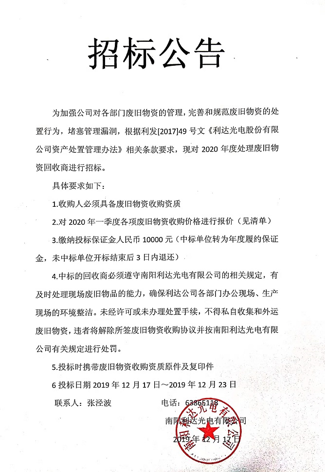 - (2023-11-29)招標(biāo)公告(合色棱鏡)廢品招標(biāo)